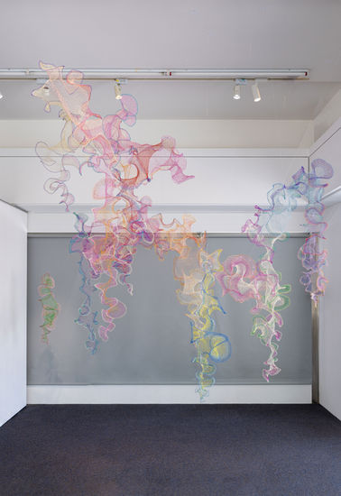 與展覽同名之最新創作系列「初始狀態」,藝術家嘗試以非對稱式的結構與隨興自在的作品線條,呈現不受準則拘束的不羈精神。在銅線編織交錯之中,其作品仍保留了媒材的個別原色,型塑出具流動感、非單一形體的樣貌,蘊含著專屬手工創作的初始與自然。