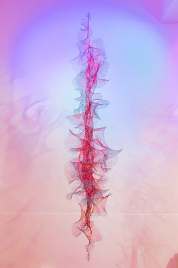 For her solo exhibition Will Looped, Taiwanese artist Julia Hung shifts her gaze inward to question the notion of free will while contemplating the originality of art. Hung often examines social issues in her works, but the pandemic of COVID-19 has confronted her with the changeable nature of life. To find an inner balance, the artist meditates and ponders on the essence of life and art while crocheting enameled copper wire into permeable organic forms. A new body of jewel-like suspension sculptures visualizes her contemplation on the linearity of time and the causality of free will, and reconciling freedom and limitation. Her transcendent world invites viewers to meditate and face uncertainties in life.