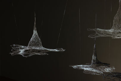 Utilizing a deceptive aesthetic of ethereal fragility, this suspension sculpture subverts the repetitive domestic gesture of weaving to yield biomorphic forms that hover in tension between organic flow and physical containment. The work investigates how the structural identity of femininity is not natural, but constructed, performed, and continually redefined.