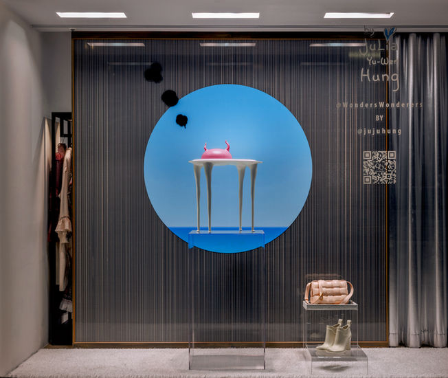 藝術家洪郁雯在TRENDS櫥窗展出《Wonders & Wonderers》,除了新的銅線編織作品,也發表全新雕塑系列「蛋也?」,並在女裝店搭配AR擴增實境,獻給引起驚嘆的wonders,及好奇、喜愛思考的wonderers,望觀者感受生命中不同的面向及悸動。